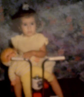 Viviane Moura aos 2 anos: tentando perder o medo do triciclo |